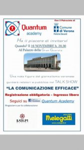 …perchè il trucco non puo’ mancare sui visi dei protagonisti,quando ci sono riprese video, o luci molto forti come quelle puntate su illustri oratori del panorama culturale ed accademico nazionale di una serata in “scena” alla Gran Guardia…nel pieno centro storico di Verona.